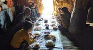 تهیه ماکارونی خوشمزه در روستای سنگی بسیار قدیمی